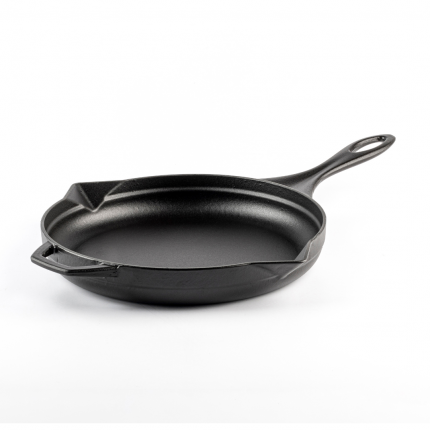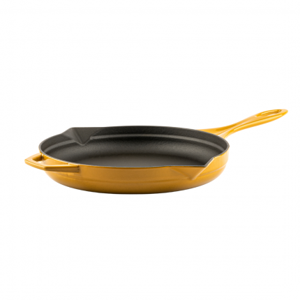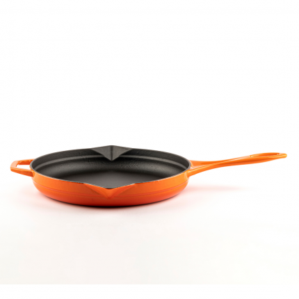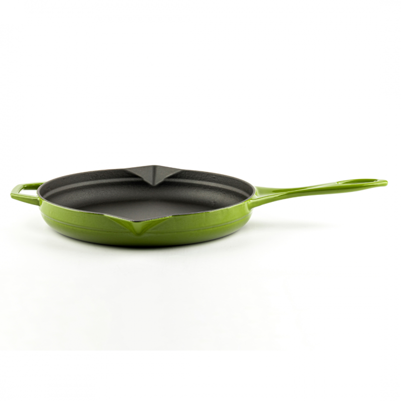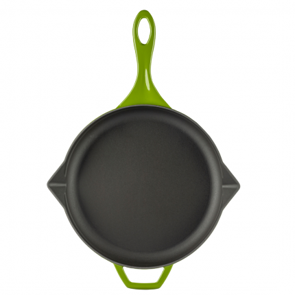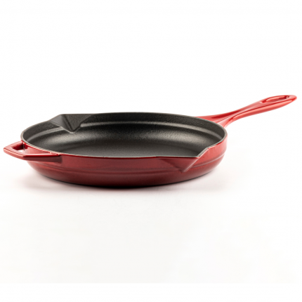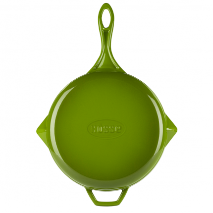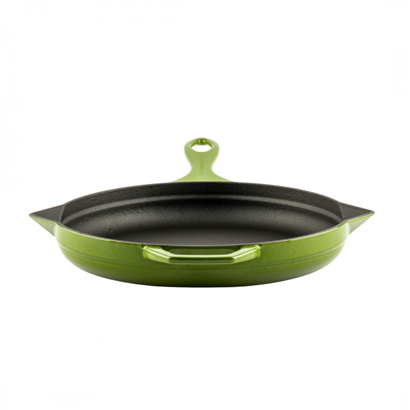 Sartén de hierro fundido con esmalte porcelánico lacado al horno.