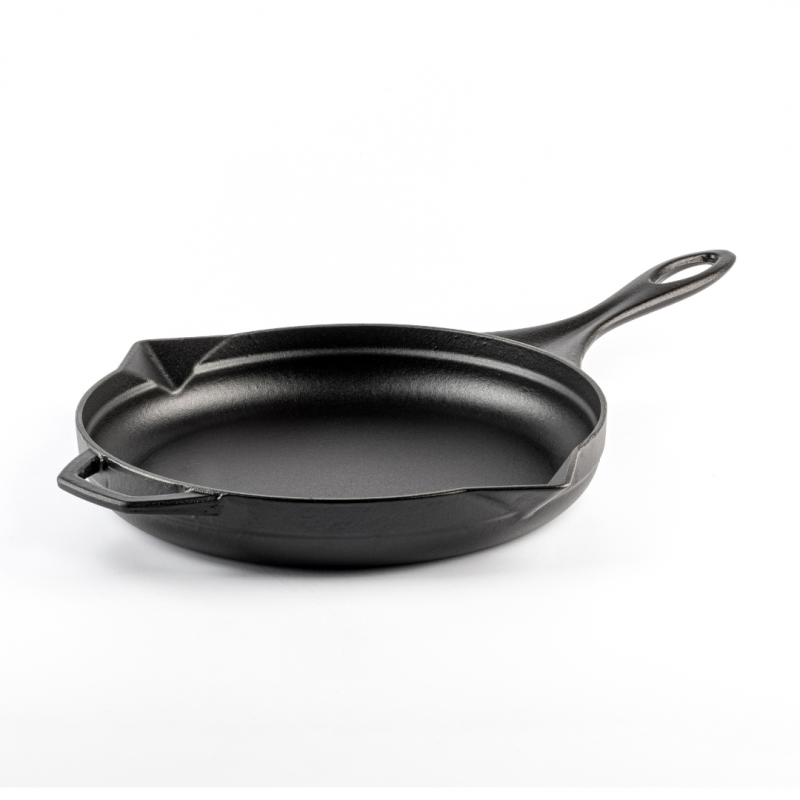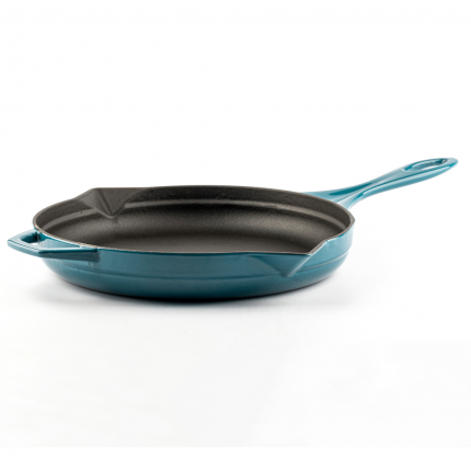 Sartén de hierro fundido con 3 capas de esmalte porcelánico lacado al horno con un proceso doble.