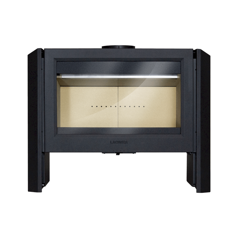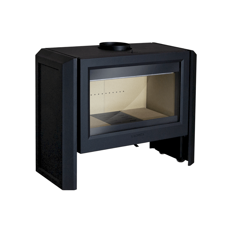 Interior en vermiculita con parrilla de fundición y base refractaria.