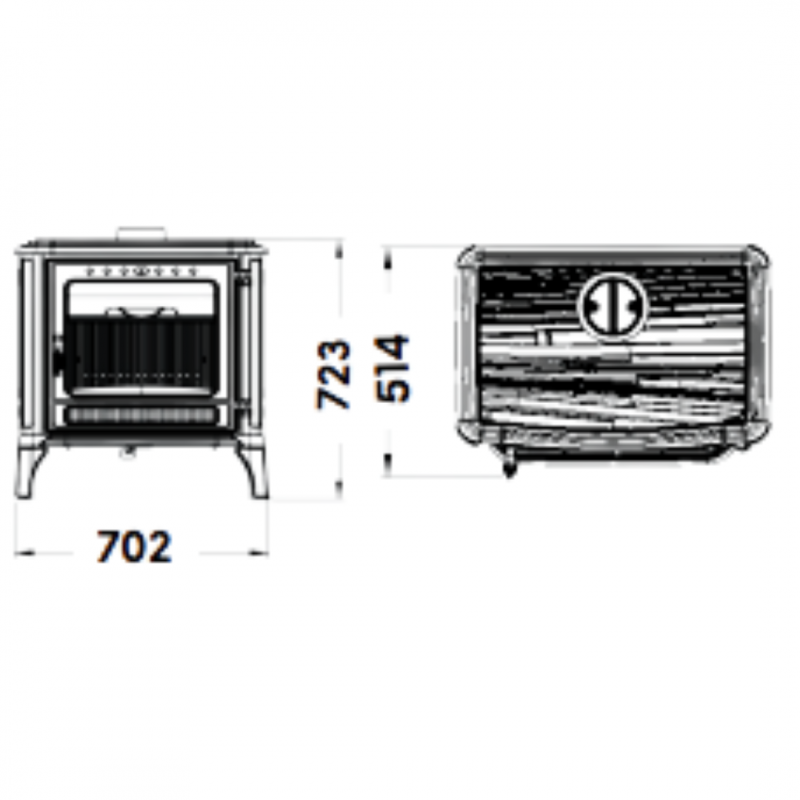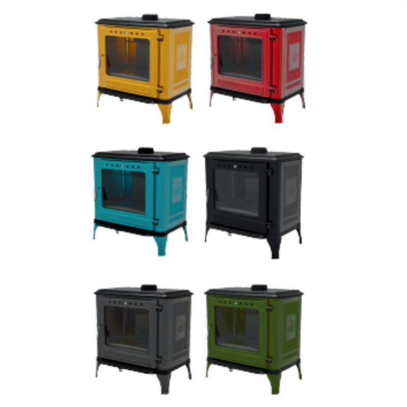 Estufa de leña modelo Dana con diferentes opciones de la marca Ferlux.