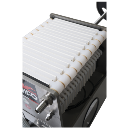 Filtradora de vino pulcino inoxidable, que garantiza un excelente nivel de depuración.